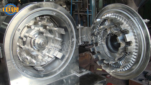 本機適用于活動齒盤和固定齒盤間的相對運動,使被粉碎物經(jīng)齒沖擊、摩擦及物料彼此間沖擊而獲得粉碎。且20型、40型、60型全部按"GMP"標(biāo)準(zhǔn)設(shè)計,整機全部用不銹鋼材料制造。30型及40型粉碎室可配水冷卻夾套、該機已達(dá)國際先進(jìn)水平。